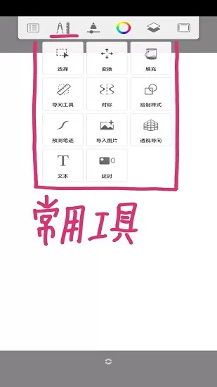 用笔轻点你就能使用该软件的顶尖工具:快速反应铅笔;标记笔和喷枪;随笔移动的图层;背景模板。