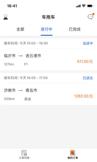 详细的订单列表为你呈现,你可以及时查看到适合自己的订单;