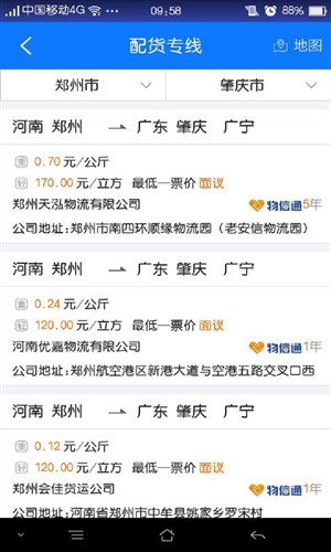 5、地图查找:地图查找附近的货源、配货信息部、物流园、