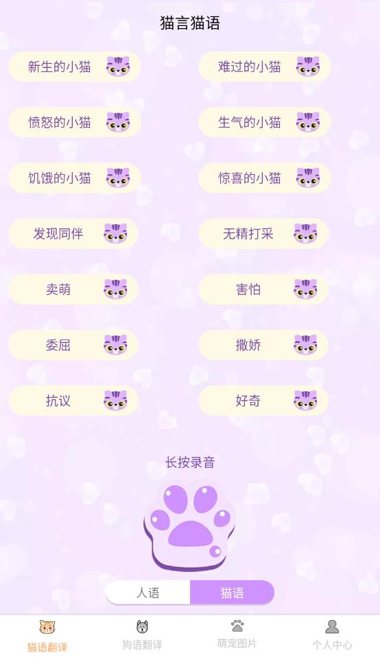 3、用户可以通过语音、文字或图片的方式输入需要翻译的猫狗语言。