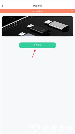 注:若手机无自带红外模块,可点击 “获取配件” 购买适配红外配件,安装后才能完成连接。