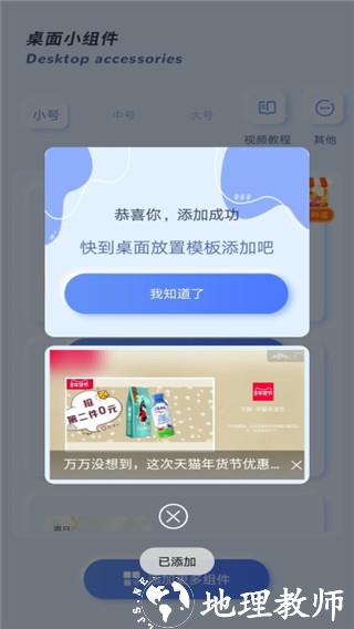 4、组件添加成功后,返回手机桌面,按提示完成桌面添加操作即可使用。