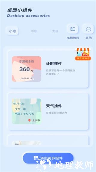 3、组件类型丰富:提供天气预报、倒计时、相册、时钟等多种类型小组件,满足多样化桌面美化与功能需求。