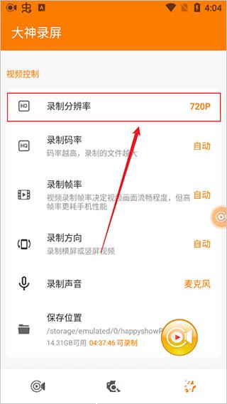 2、进入设置详情页后,找到并点击 “录屏分辨率” 选项。
