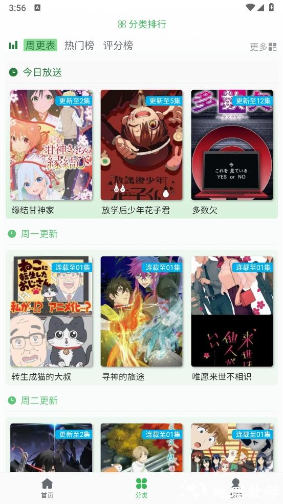 3、涵盖数十种题材分类,用户可通过排行榜快速发现热门动漫作品。