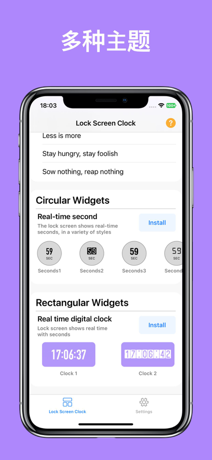 4. 自定义背景与字体:用户可以选择自己喜欢的图片或颜色作为锁屏时钟的背景,并设置多种字体样式和颜色。