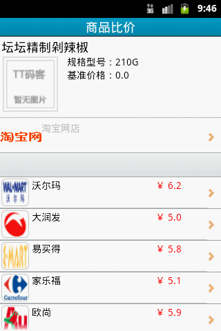 TT码客是一款专业多功能智能手机条形码、二维码(QR码、DM码)扫码比价购物软件。拿起手机扫描商品条码,即刻在手机上显示商品在沃尔玛、家乐福、好友多、淘宝网、一号店等商家上的价格。有全国各大卖场、品牌店的折扣信息。