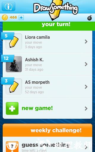 我画你猜是Facebook 一早就的《Draw Something Free》的游戏,系统提供英文生字,然后大家互相画图画让对方猜图中所表达的生字,猜对便能和对方一起获得金币。此游戏实在老少皆宜,一方面能发挥玩家的想像空间及创意,另一方面又能多学习生字(看不懂的字就跑去查字典),属于近期中较有趣的游戏之一。