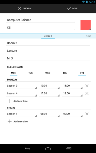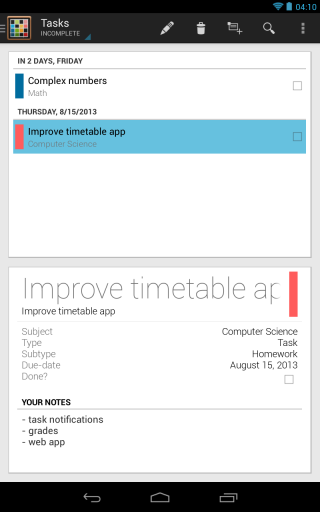 Timetable是在Google Play上较漂亮,较直观的管理学校生活的应用程序。保存您的课程表和作业、考试等所有功课。经常忘记在上课时候关掉手机音量?不用担心,TimeTable会在上课时间自动静音您的手机(Automute)。