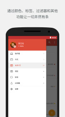 利用安卓系统较具创新性的功能,结合 Todoist 方便的小插件、可操作通知、Google Now 及 DashClock 整合、跨应用共享等等。通过适用于安卓可穿戴设备的 Todoist,在手腕间就可以轻松添加任务、收取通知、查看应用程序发送的列表内容。