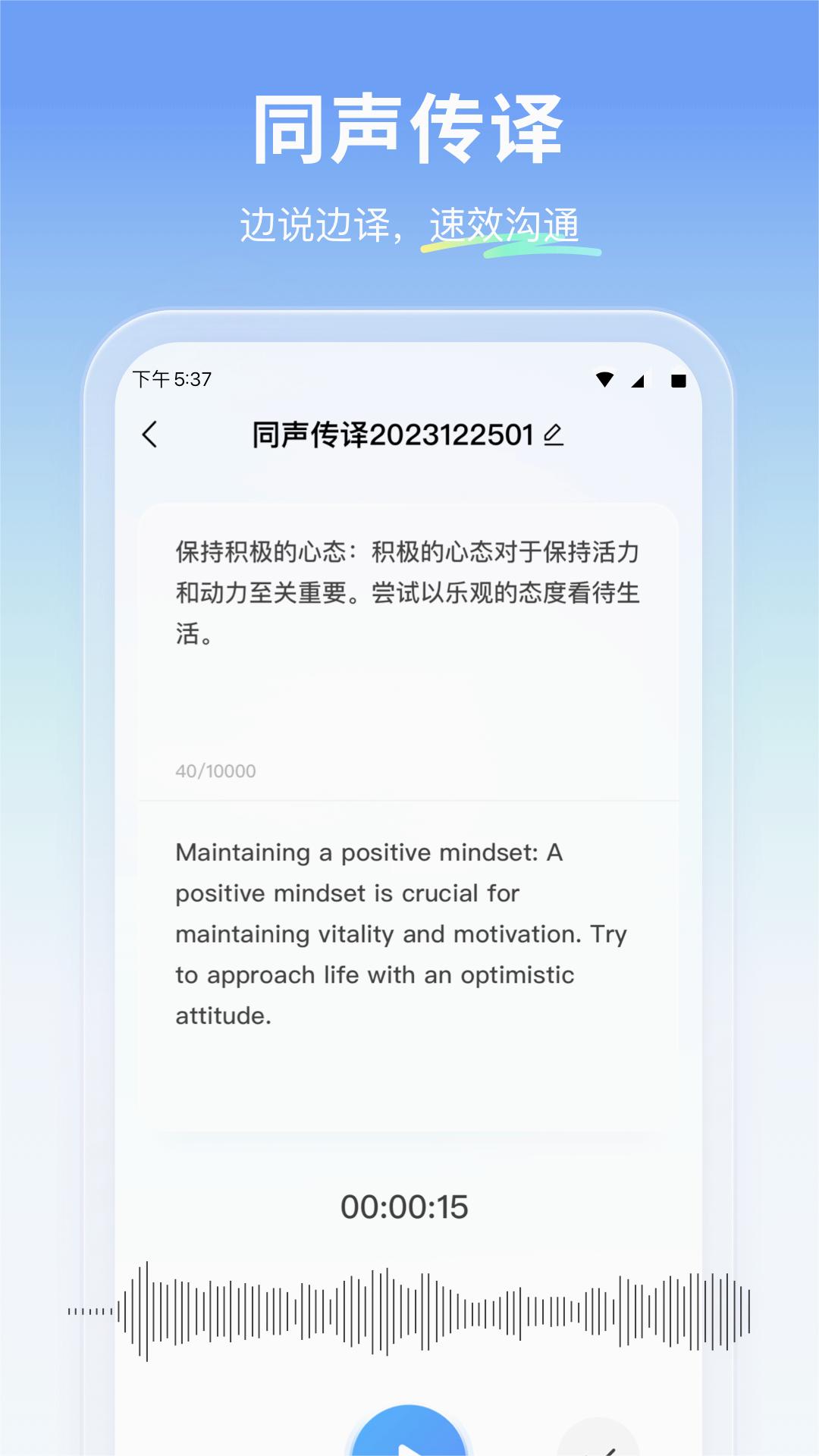 云朵翻译官是一款功能强大的手机翻译软件,专为满足用户在不同场景下的翻译需求而设计。这款软件凭借其高效、准确的翻译能力,以及多样化的翻译方式,成为了众多用户信赖的翻译助手。无论是学习、工作还是旅行,云朵翻译官都能帮助用户轻松跨越语言障碍,实现无障碍沟通。