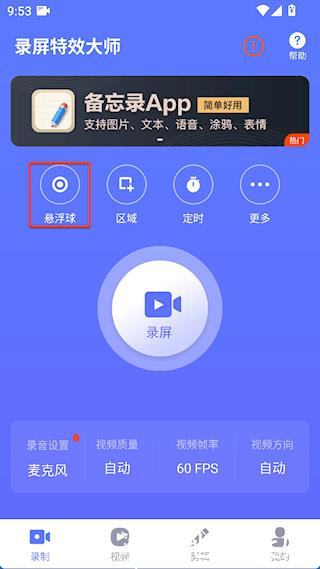3、之后屏幕边缘出现悬浮球,点击进行录屏