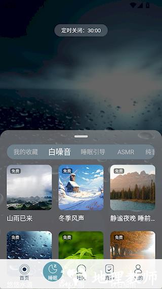 2、睡眠界面有许多背景音乐,可以定时关闭