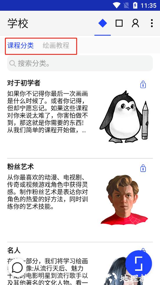 1、下载安装Sketchar,运行软件,之后点击上方红框中的图标进入“学校”专区;