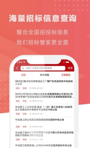 3. 信息推送:软件能够实时推送最新的招标信息到用户的手机上,确保用户不错过任何重要信息。