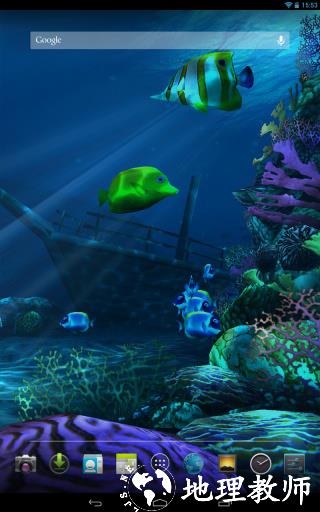 采用真实 3D 建模技术打造海底环境,气泡缓慢上升、光影随时间变化、鱼群自然游动等细节都十分逼真,带来极强的沉浸式视觉体验;