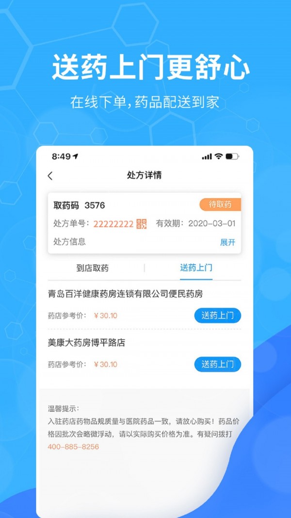 首诊处方后,为重复用药患者提供处方用药建议,方便患者在就近医院药房或药店取药