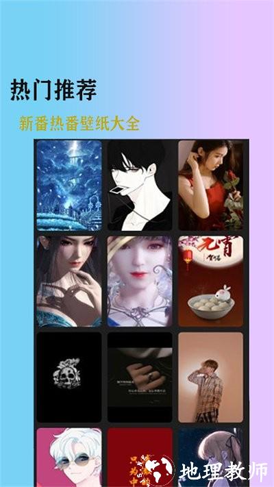 1、热门推荐,新番热番壁纸大全,让用户都可以直接下载使用;