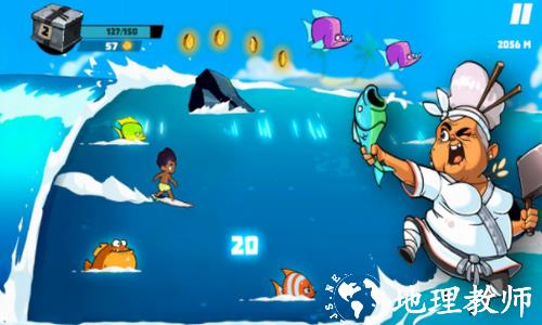 寿司冲浪是一个集休闲闯关,竞速,冒险等等玩法于一体的一个轻松有趣的游戏,设计精美的卡通画面风格和真实的玩法场景,为我们呈现出了一个奇妙的景观,经典的休闲冲浪游戏玩法,在大海的波涛上进行爽快的冲浪,获取丰厚的奖励,收集物资制作各种物品。