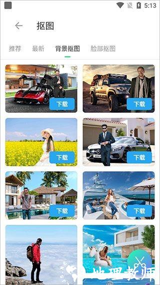 2、选择 “抠图” 功能,进入后可查看推荐、最新、背景抠图及脸部抠图内容,支持一键下载所需素材。
