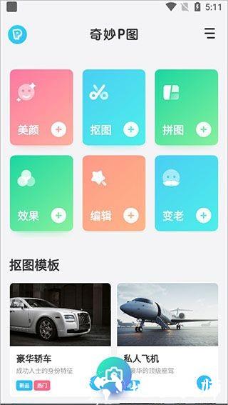 1、打开奇妙 P 图旧版,首页包含美颜、抠图、拼图、效果、编辑、变老六大功能,界面布局清晰直观。