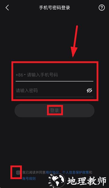 3、输入手机号与对应密码,勾选 “我已阅读并同意用户协议、个人信息保护政策和账号规则”,点击 “登录” 按钮即可完成操作。