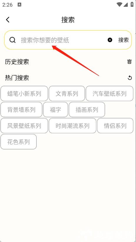 3、若需精准查找资源,可通过顶部搜索栏输入关键词(如 “古风壁纸”“动漫头像”),快速定位目标内容。