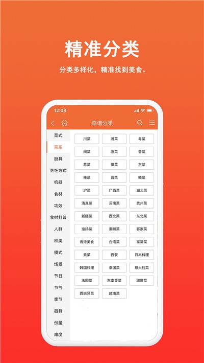 3、无论是中国菜还是国外菜,在这边全部都可以找到,而且还把各种菜系分了类,按耐细来寻找;
