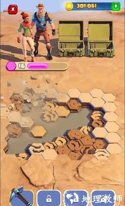 2、挖到的化石碎片能够自动拼装,随着挖掘深度的不断增加,最终将能够还原出一只逼真恐龙;