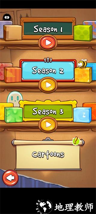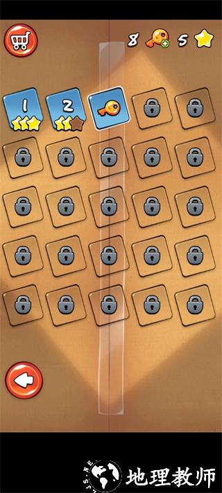 1. 游戏目标:每个关卡中,玩家需要割断绳子,让糖果准确落入om nom的嘴巴里,同时尽可能多地收集星星。