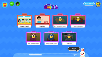 1.Level1共有7个单元,每个单元按照6岁前儿童认知规律精心组织,保证孩子玩的开心学得会。