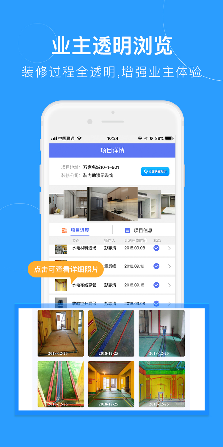 给业主提供“透明装修”体验,轻松应对客户咨询,强力促签单。帮助建立可持续的获客体系;