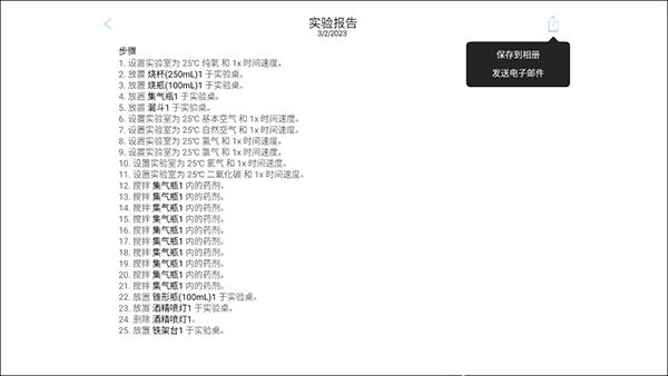 3、支持自动生成实验报告,实验完成后可自动生成报告,记录所有实验步骤,还能直接保存为图片或通过电子邮件发送。