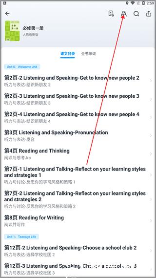 1、全书单词:支持整册课文单词播放,可根据需求设置播放模式,助力单词记忆;