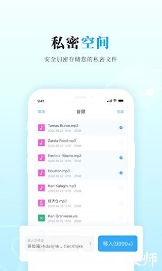 4、提供加密保险箱功能,采用双重验证机制保护敏感文件。私密文件独立存储于加密空间,与普通存储区域实行物理隔离。