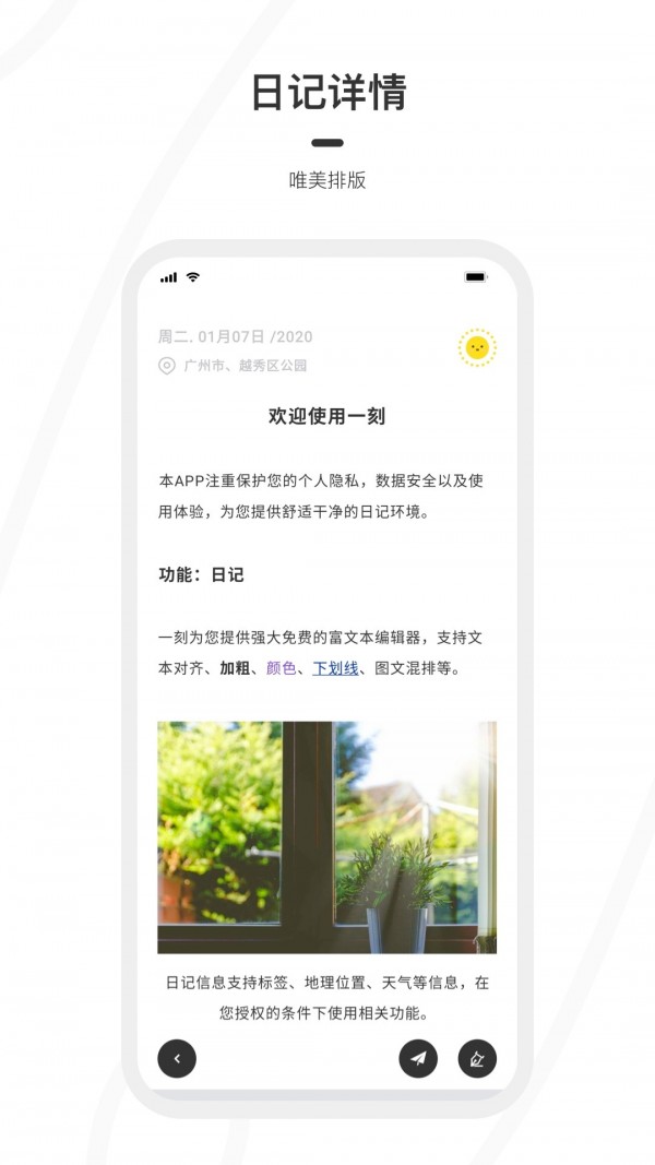 记录生活,留下趣事,今天小编给大家带来一款非常实用的手机记录软件《一刻日记》,这款软件可以用来记录生活中各种事情,相当于一本笔记本,而且软件支持排版、设置不同颜色,字号等,此外软件中还有天气功能哦。