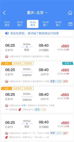 3、航班智能对比:提供多航班对比功能,准确显示时刻信息,避免误订。