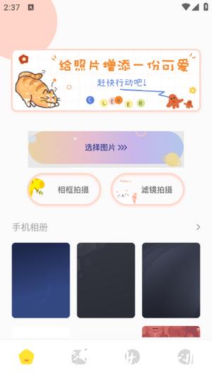 2、在主页中选择需要处理的图片,即可为图片添加相框和滤镜内容,让照片呈现出不同风格。