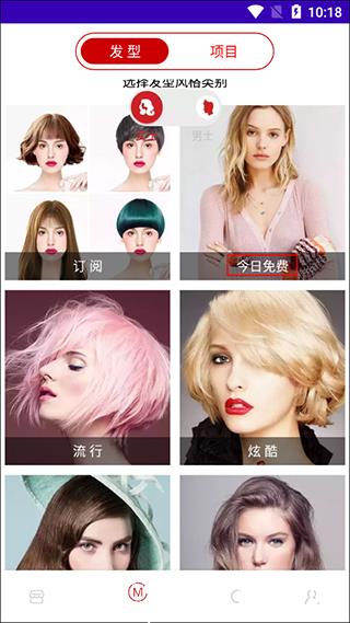 2、进入发型页面后,在选项中选择 “今日免费” 栏目;