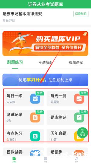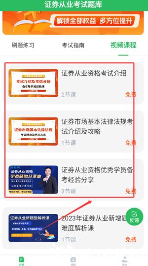 4、题库资源均可免费使用,无需支付任何费用即可畅享海量练习内容,同时提供大量精选视频课程,通过直观生动的讲解方式,帮助用户更高效地掌握复杂难懂的证券专业知识。
