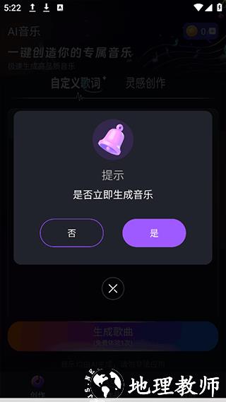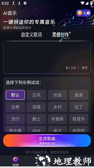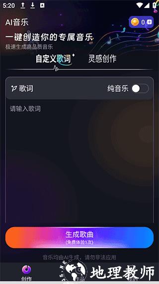 1、进入 APP 后,可直接填写想好的歌词,确定创作基础内容。