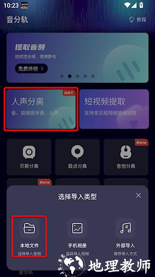 1、启动应用后选择人声分离功能,从本地存储空间导入需要处理的音频文件。