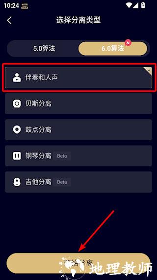 3、在分离模式中选择同时提取伴奏与人声的选项,启动处理进程。