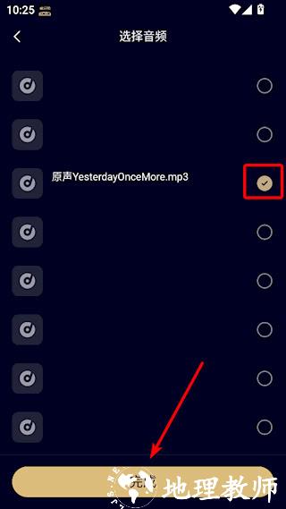 2、在文件列表中勾选目标音频素材,确认选择后进入参数设置界面。