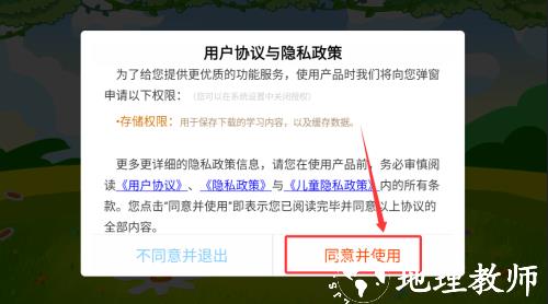 1、首次使用需点击同意用户协议,并进入应用主界面,开启学习流程。