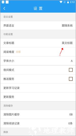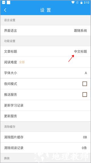 3、进入设置界面后,在功能设置板块中找到 “文章标题” 相关选项,此时显示默认设置为 “中文标题”。
