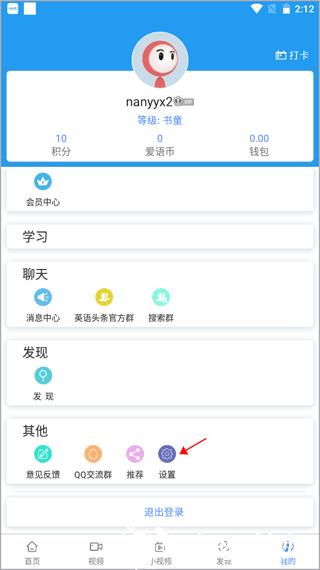 2、在首页点击底部菜单栏 “我的” 选项,切换至个人中心界面,找到并点击下方的 “设置” 按钮。