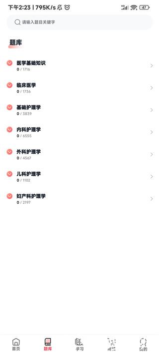 6、题库页面顶端设有搜索框,输入知识点、题型等关键词,可快速定位目标题目,精准刷题。
