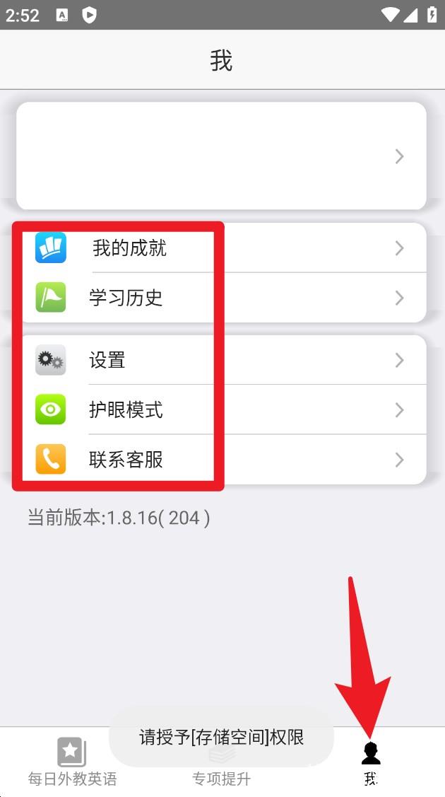 3.点选右下角我页面,可以查看学习成就与学习历史,也能进入设置、开启护眼模式或联系客服,掌握更多个性化功能。