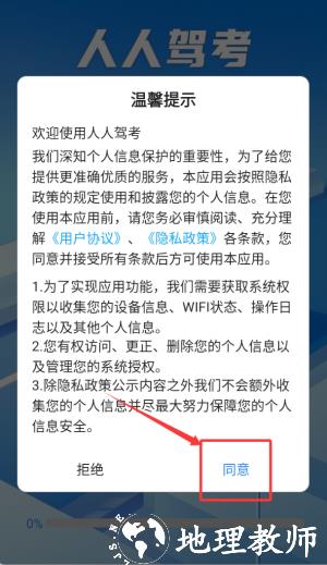 1、首次使用需点击同意用户协议,并进入应用主界面,开启学习流程。